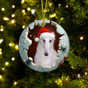 Borzoi 3D Circle Ceramic Ornament