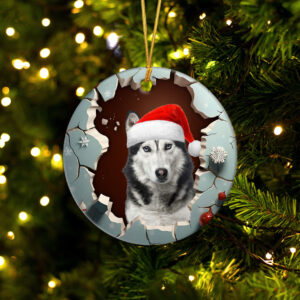 Husky 3D Circle Ceramic Ornament