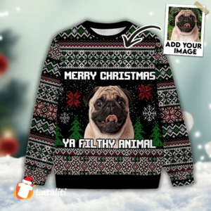 Ugly Sweatshirt All Over Print Custom Merry Christmas Ya Filthy Animal (Black Color)