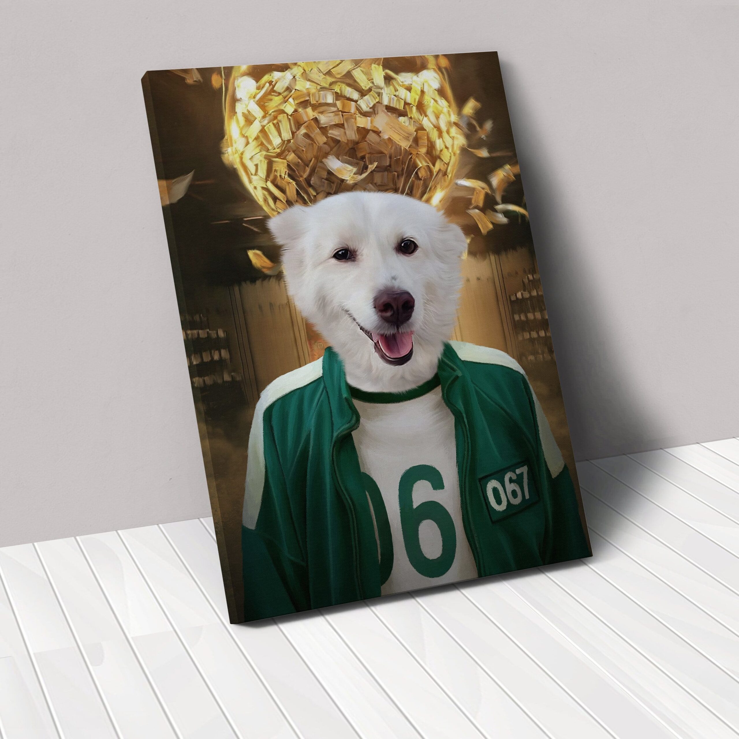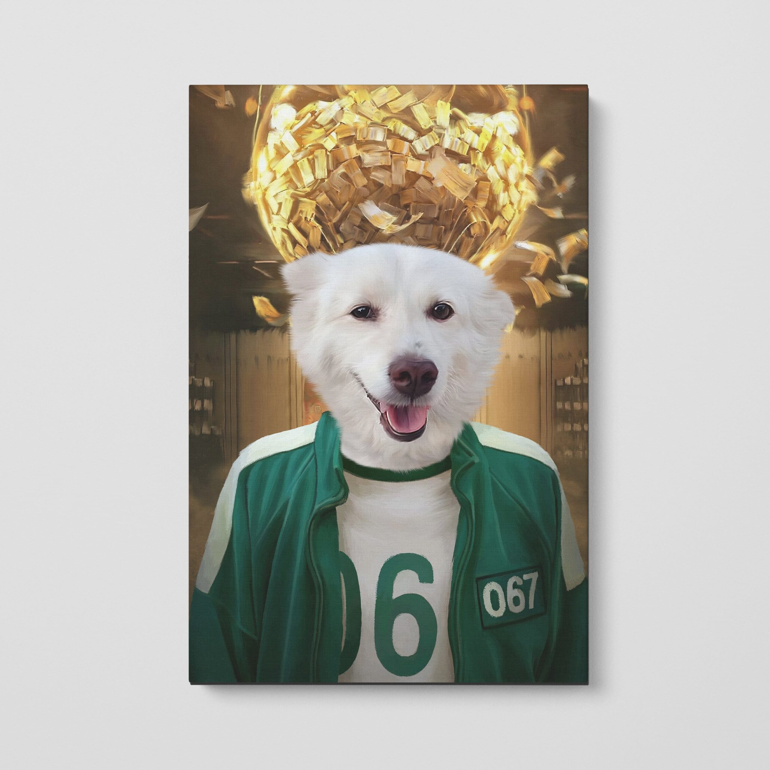 Can you imagine your pet’s proud face printed on to our authentic ‘Player 067’ oil painting style pet portrait? Our beautiful canvases are printed to the highest quality, and hand crafted with sturdy, hard wood frames.