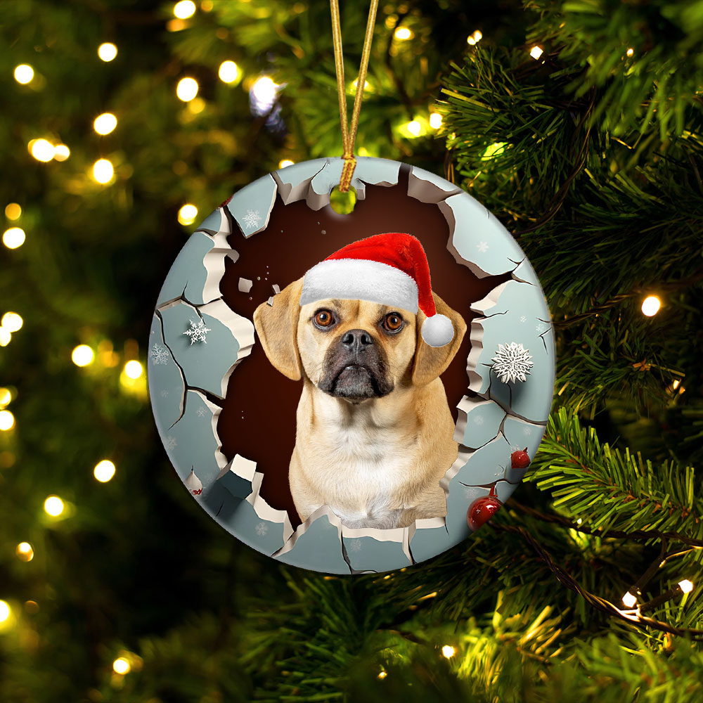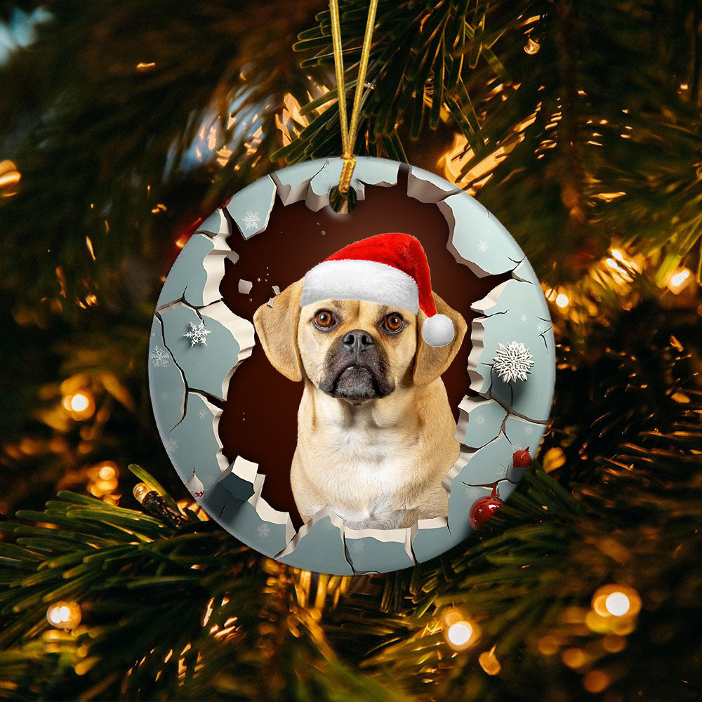 Puggle 3D Circle Ceramic Ornament