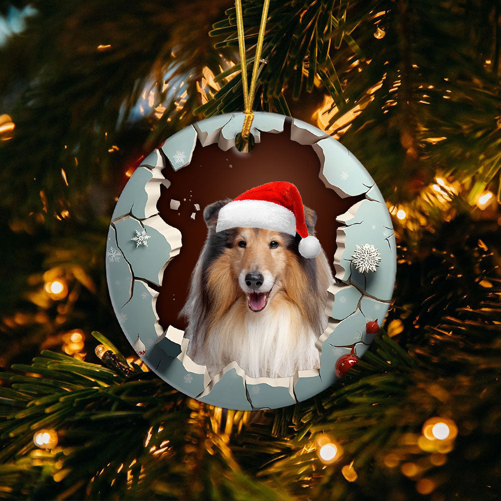 Rough Collie 3D Circle Ceramic Ornament