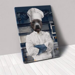 Can you imagine your pet’s proud face printed on to our authentic ‘The Chef’ oil painting style pet portrait? Our beautiful canvases are printed to the highest quality, and hand crafted with sturdy, hard wood frames.