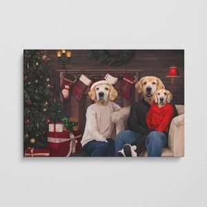 Can you imagine your pet’s proud face printed on to our authentic ‘The Family Christmas (Three Pets)’ oil painting style pet portrait? Our beautiful canvases are printed to the highest quality, and hand crafted with sturdy, hard wood frames.