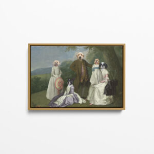 Can you imagine your pet’s proud face printed on to our authentic ‘The Family Picnic (Five Pets)’ oil painting style pet portrait? Our beautiful canvases are printed to the highest quality, and hand crafted with sturdy, hard wood frames.