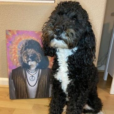 Can you imagine your pet’s proud face printed on to our authentic ‘The Hippie’ oil painting style pet portrait? Our beautiful canvases are printed to the highest quality, and hand crafted with sturdy, hard wood frames.