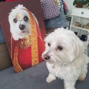 Can you imagine your pet’s proud face printed on to our authentic ‘The Indian Rani’ renaissance era portrait? Our beautiful canvases are printed to the highest quality, and hand crafted with sturdy, hard wood frames.