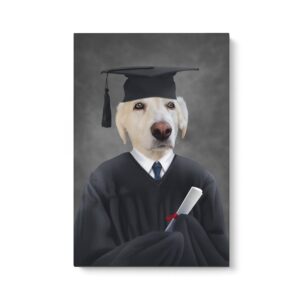 Can you imagine your pet’s proud face printed on to our authentic ‘The Male Graduate’ oil painting style pet portrait? Our beautiful canvases are printed to the highest quality, and hand crafted with sturdy, hard wood frames.