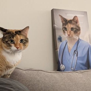 Can you imagine your pet’s proud face printed on to our authentic ‘The Nurse’ oil painting style pet portrait? Our beautiful canvases are printed to the highest quality, and hand crafted with sturdy, hard wood frames.