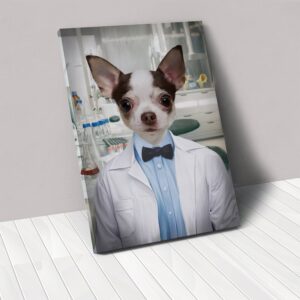 Can you imagine your pet’s proud face printed on to our authentic ‘The Scientist’ oil painting style pet portrait? Our beautiful canvases are printed to the highest quality, and hand crafted with sturdy, hard wood frames.