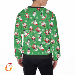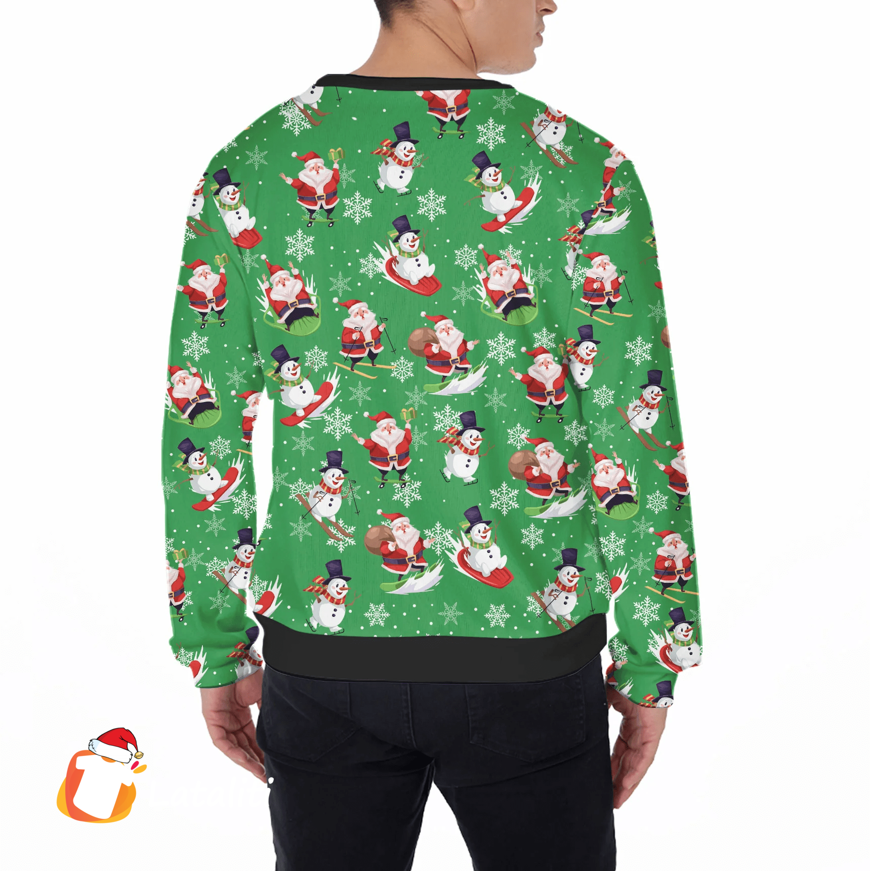 Ugly Sweatshirt All Over Print Custom Funny Santa Claus & Snowman Green Color